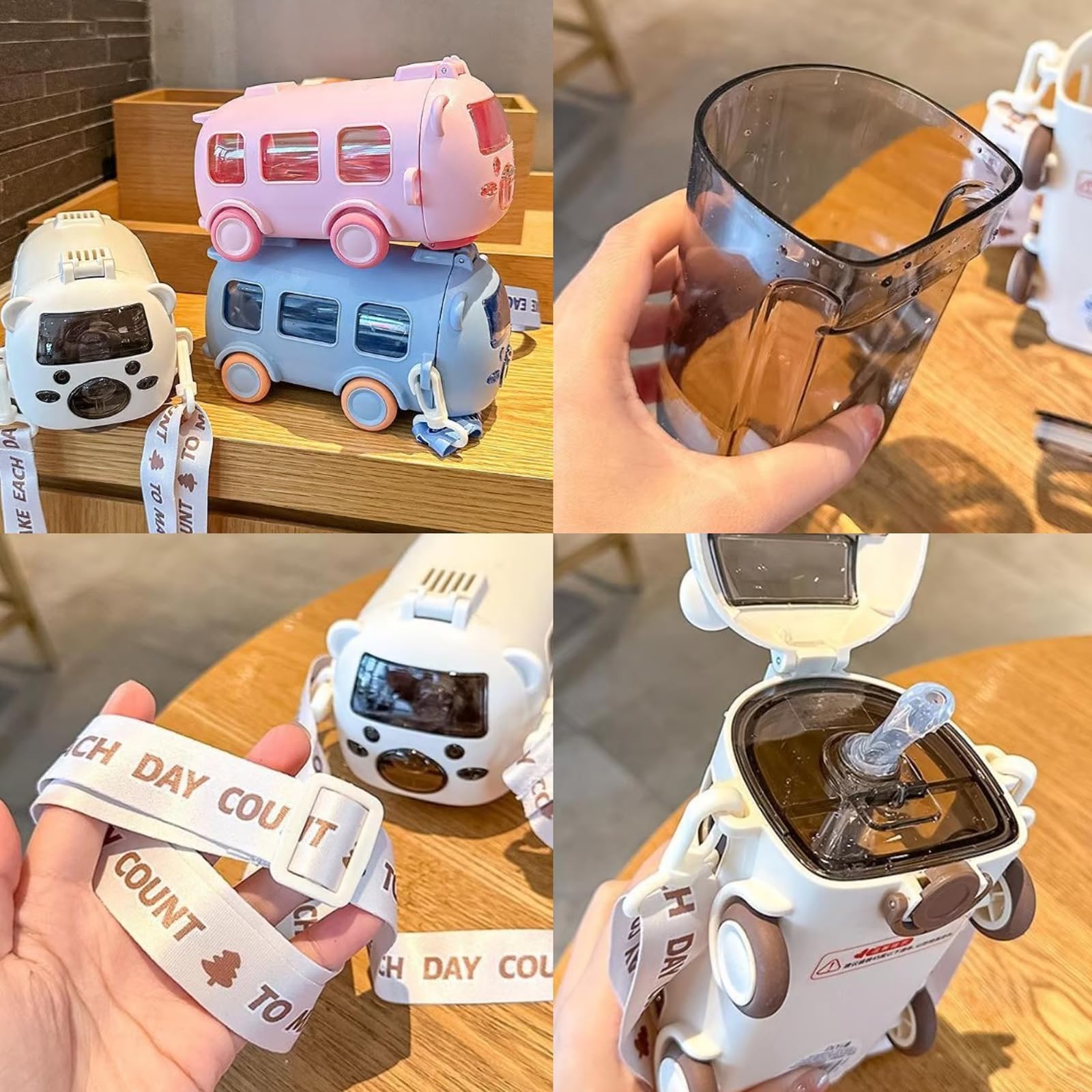 Cute Bus Shaped Water Bottle With Straw 500ml Toy Car Bottle